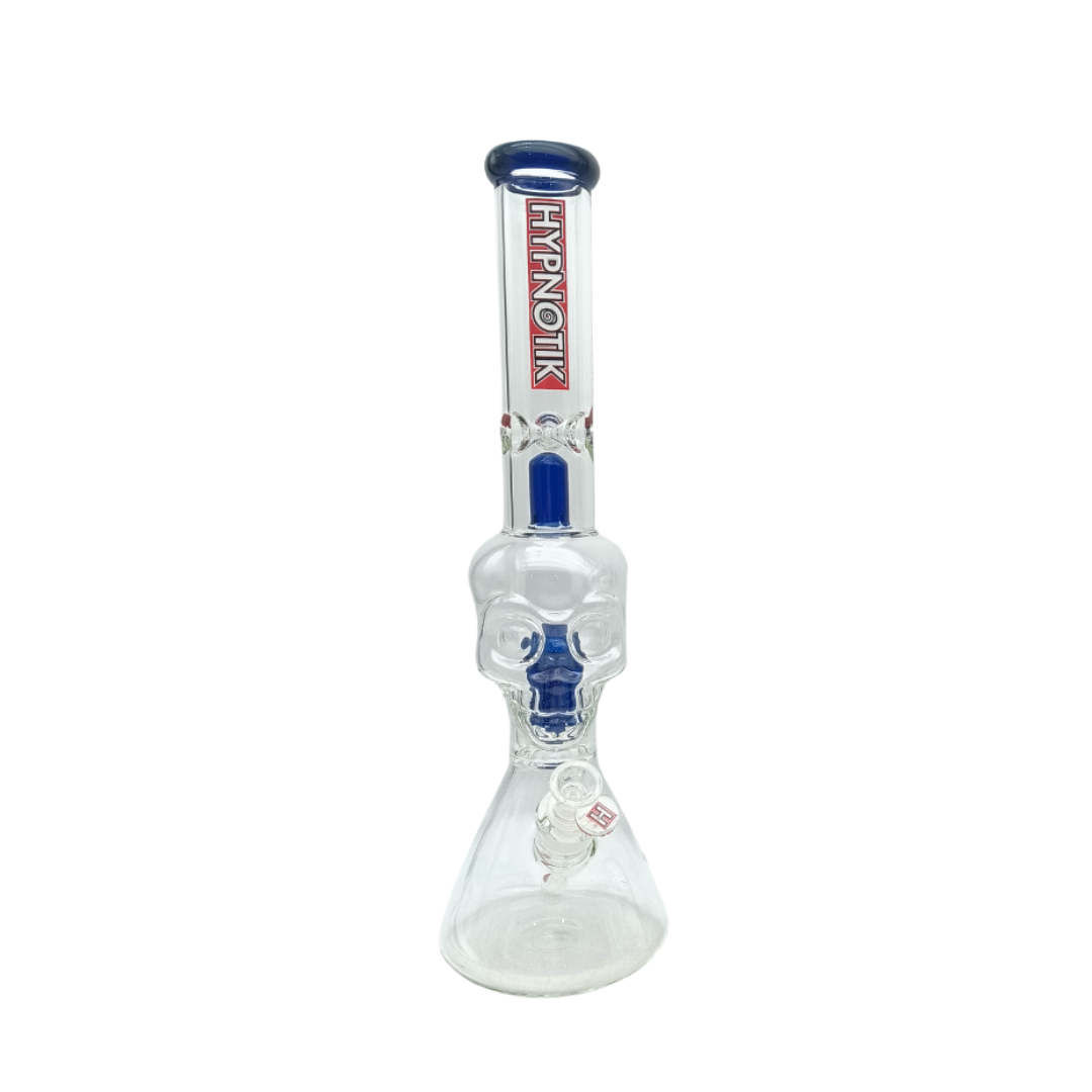 HYPNOTIK 18 INCH BEAKER BONG WITH SKULL SHAPED PERK AND SPLASH GUARD, BLUE